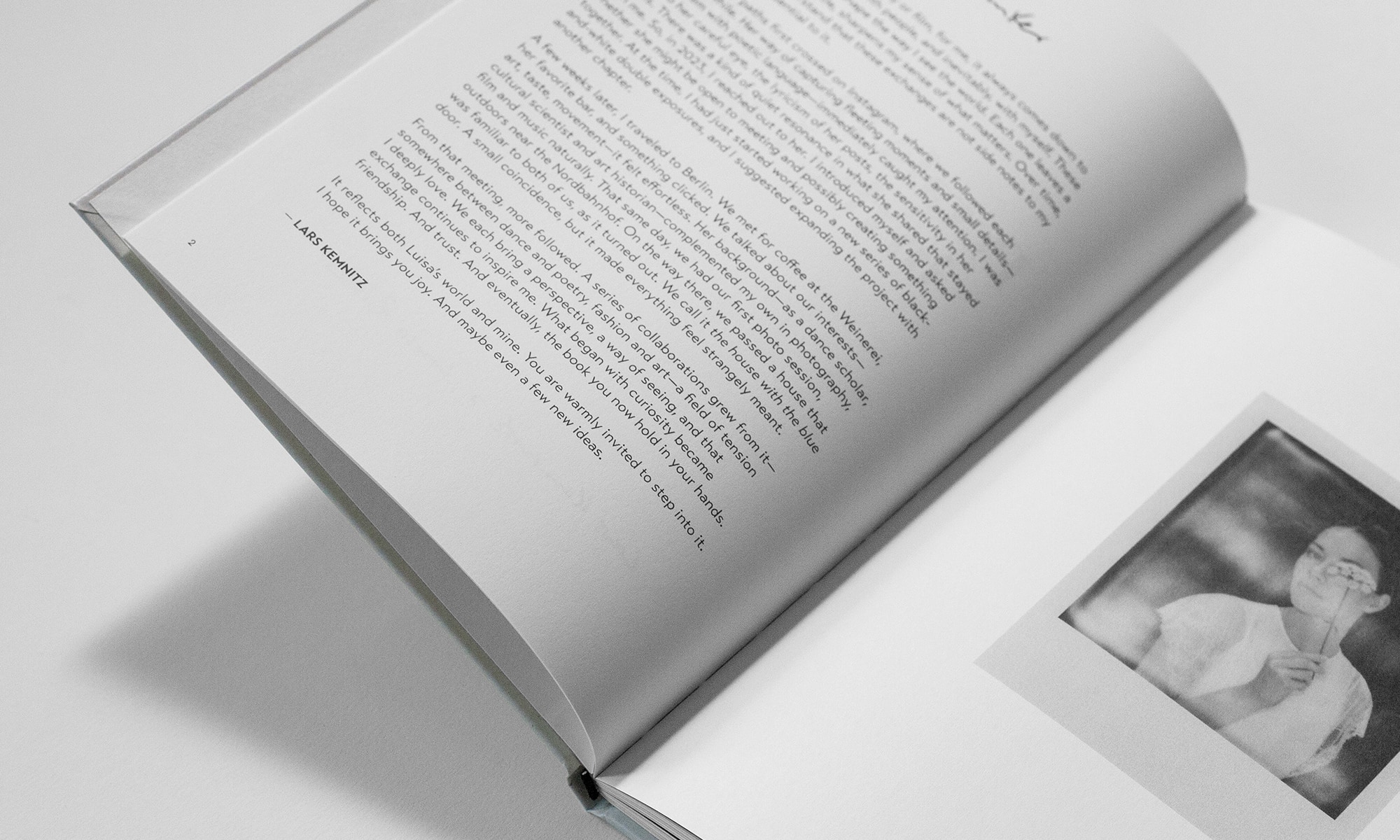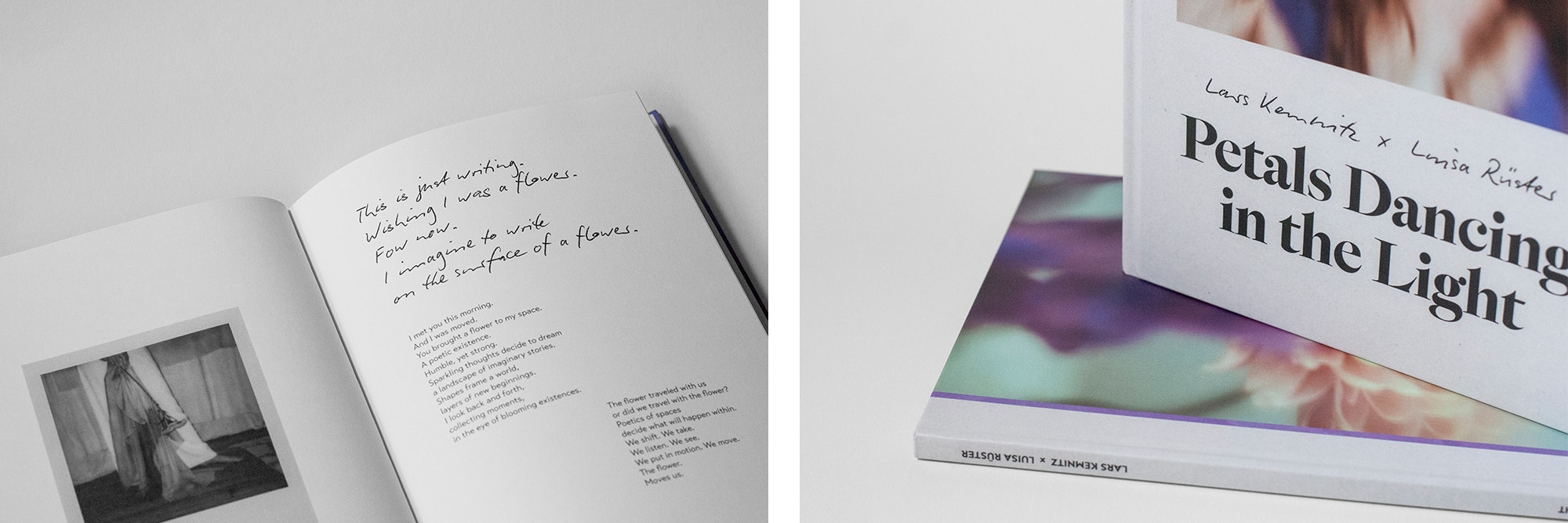 It reflects both Luisa’s world and mine, combining poetry in image and text with experimental photographic techniques. It is an ode to the beauty of flowers, to intuitive movement, to the sensual quality of fabrics, and to Berlin as a perpetually inspiring place that subtly wove itself into the images. The book is a labor of passion, a timeless publication of high aesthetic value that we both cherish.